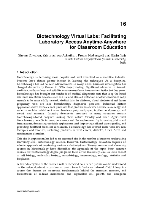 Pdf Biotechnology Virtual Labs Facilitating Laboratory Access Anytime Anywhere For Classroom Education Prema Nedungadi Academia Edu